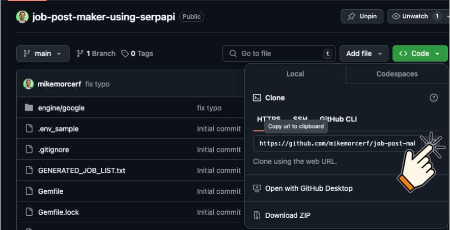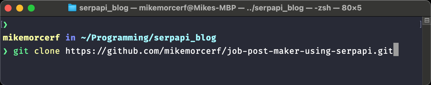 First, you will need to clone the job-post-maker-using-serpapi repository to your computer: