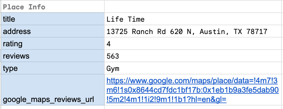 For this example, we will focus on extracting reviews for LifeTime Health Club in Austin, TX.