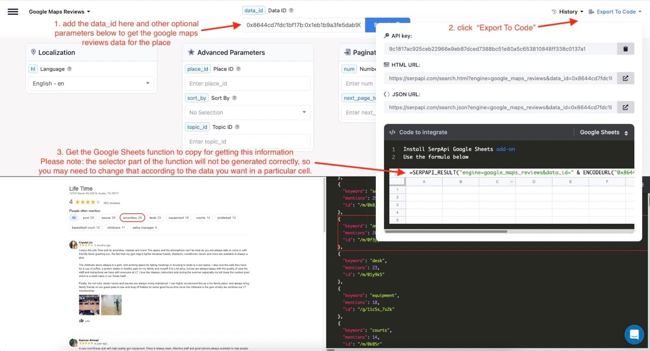 We've covered how to scrape business reviews with Google Maps Reviews API in a no-code way using the SerpApi Google Sheet Extension.