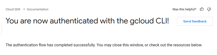 Then run gcloud auth application-default login to login. This will open a Google login page in your browser. Once you login and approve access, your credentials will be stored locally for development.