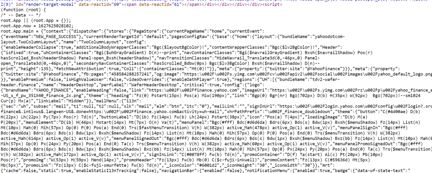 yahoo_urls = requests.get('https://query2.finance.yahoo.com/v7/finance/quote', params = params, headers = headers).text