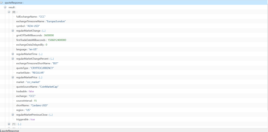 It will iterate over each available stock from the response instead and will substitute the correct stock key symbol with appropriate value data.