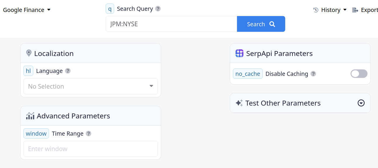 query: "engine=google_finance&q=" & ENCODEURL("JPM:NYSE")