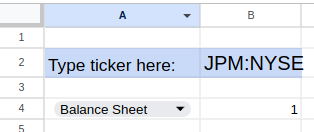 It would be nice to have a dropdown menu with a list of the financial statements we support. Next to that, we'll add conditional logic to populate a cell with the appropriate index value depending on which financial statement is being requested.