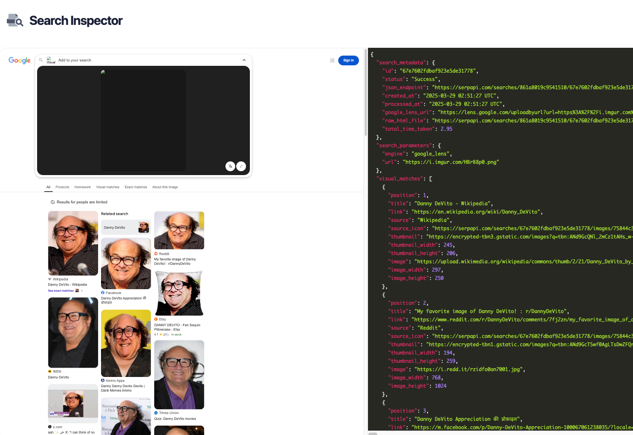 If you need to search for many images, doing so one by one could be time-consuming. Using our Google Lens API, you'll be able to do it programmatically.