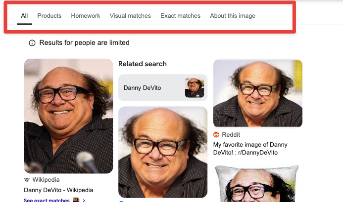 On Google Lens, you can navigate the menu at the top to see different results depending on which menu item you click.