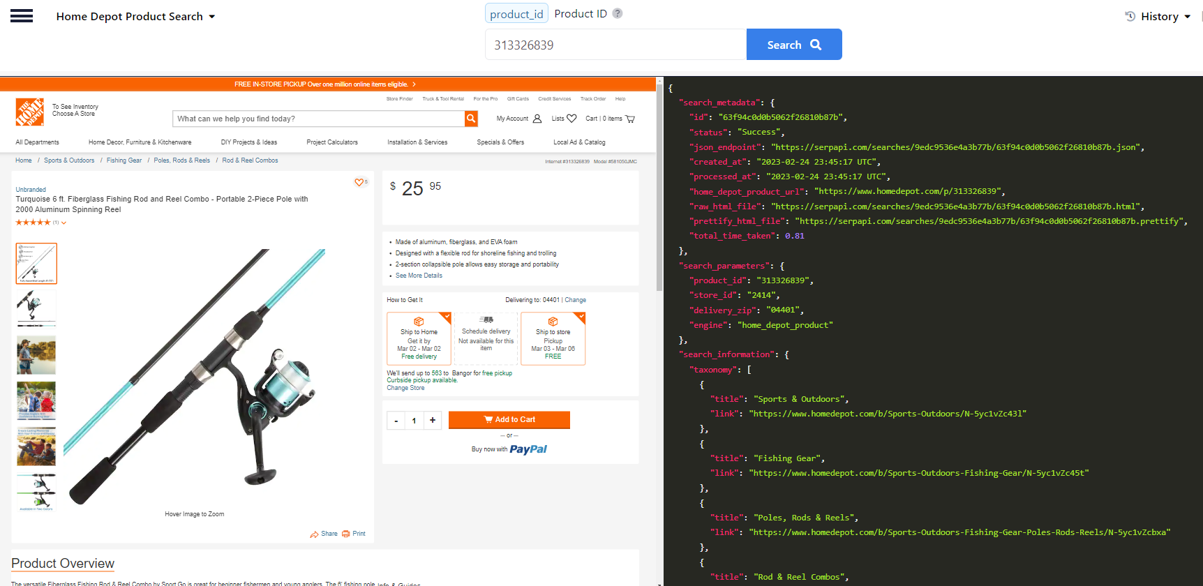 The process for scraping product details from Home Depot is almost identical to the one for scraping them from Google.