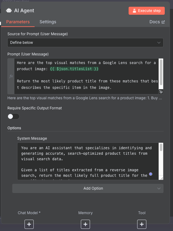 We’ll use the AI Agent to determine the most likely product name based on the title list we generated in the previous blog post.