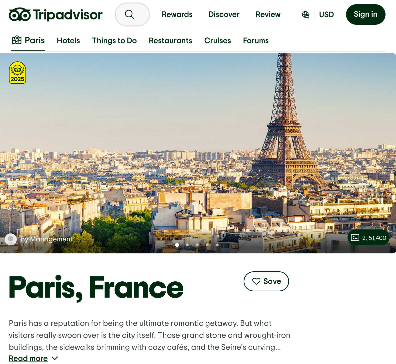 The newly released Tripadvisor Place API provides rich, structured access to Tripadvisor place data across destinations, hotels, attractions, and restaurants in a single response. It surfaces core details like descriptions, images, ratings, review counts, rankings, contact information, and AI generated review summaries, along with deep contextual data such as nearby hotels, restaurants, attractions, travel advice, itineraries, when to visit insights, pricing, amenities, menus, and operator details depending on place type. With comprehensive review content, highlights, traveler tips, and related stories, the API enables developers to build travel planning tools, comparison experiences, recommendation engines, and location based applications powered by real Tripadvisor data at scale. Details