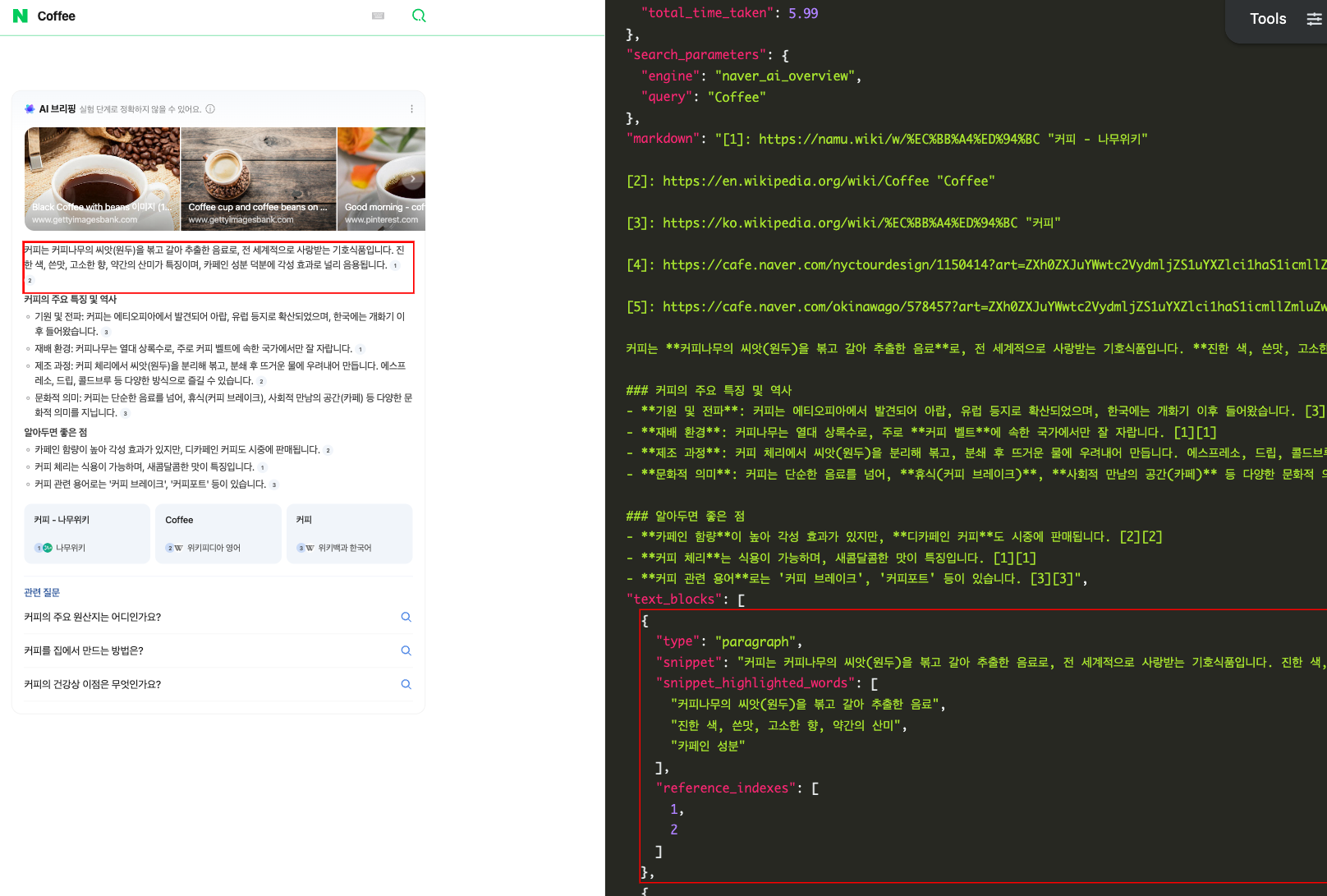 We've released the Naver AI Overview API, which extracts structured AI-generated responses directly from Naver's search results, South Korea's leading search engine. It returns comprehensive AI overview content, including text blocks, media items, reference sources, and related questions. Each response includes metadata about the AI-generated content, source citations with thumbnails and links, and suggested follow-up questions for deeper exploration. Details