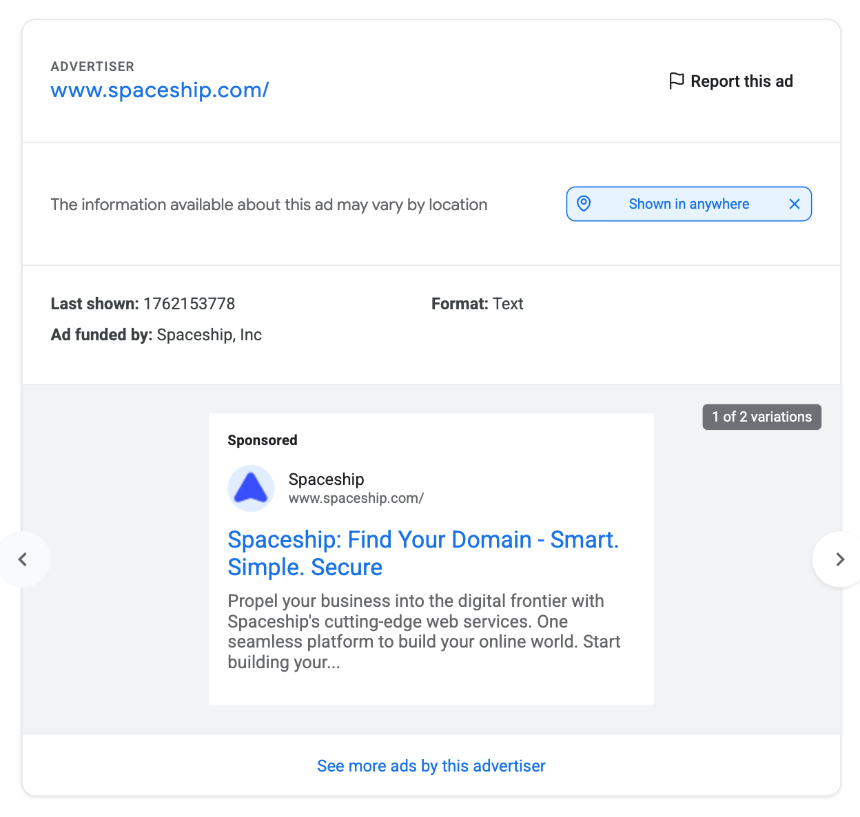 Google Ad Details API (NEW API)