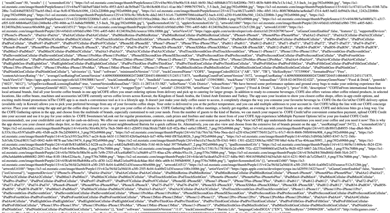 There are a few javascript rendering elements on other searches. But the entire HTML on the App Store is rendered by Javascript. So if you look at the raw_html_file within the search_meta_data it doesn’t follow the same conventional format as an HTML (if you are familiar with web development)