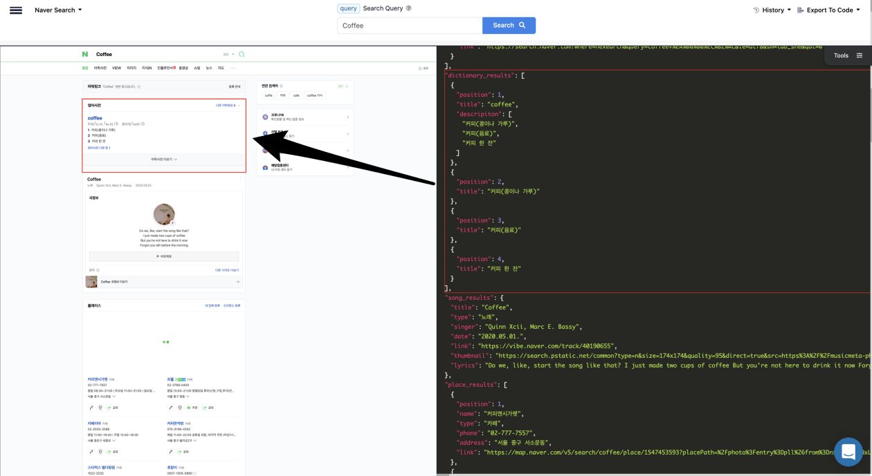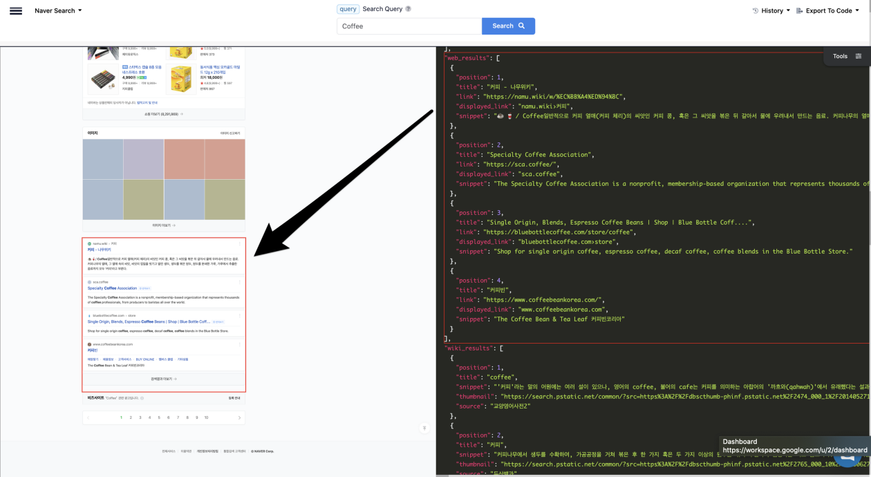 https://serpapi.com/playground?engine=naver&query=Coffee&highlight=organic_results