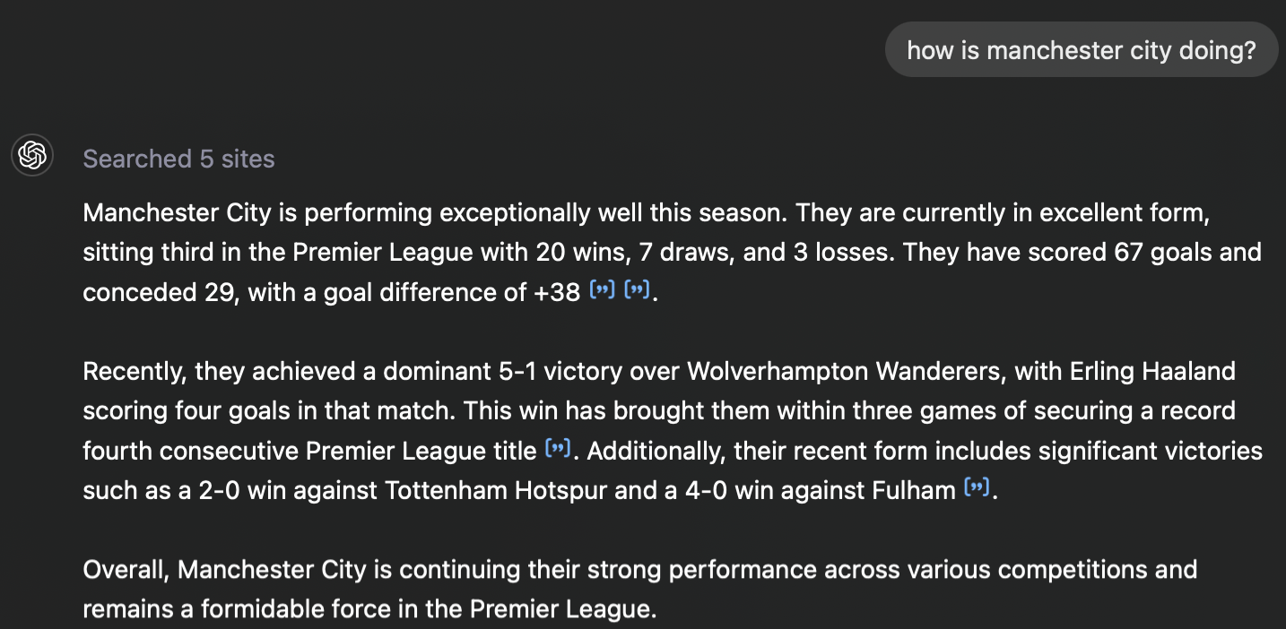 As Manchester City gears up for the upcoming seasons, their story is far from over. With a blend of tactical genius, a robust squad, and a hunger for more glory, they are not just participating in competitions; they are setting the benchmarks. For fans around the world, Manchester City is not just a club to watch, but a phenomenon to experience. Their journey is a vivid narrative of triumph, ambition, and footballing excellence, promising even more thrilling chapters in the seasons to come.It is interesting to observe the "thoughts" of the agents:
