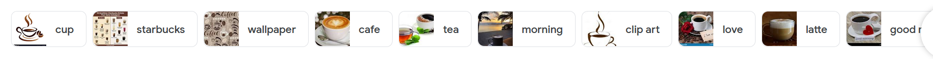 Even adding "coffee or" , "coffee and", "coffee but", "coffee yet", "coffee so" or any other conjunction can help. Because every other wall of text has those conjunctions and they don't change the context of your main keyword(s) in a serious way. So you will get a more variety of images in the end.