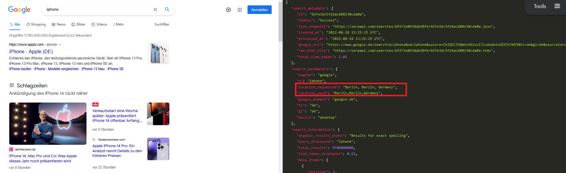 But when you search for a query with SerpApi, you have many parameters that you can deliberately choose to simulate any search in any location in any country. If you decide not to, you may expect certain anomalies in the results which you don't expect at all.