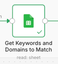 - Copy the URL from that sheet [1] and paste it in "Get Keywords and Domains to Match" node.