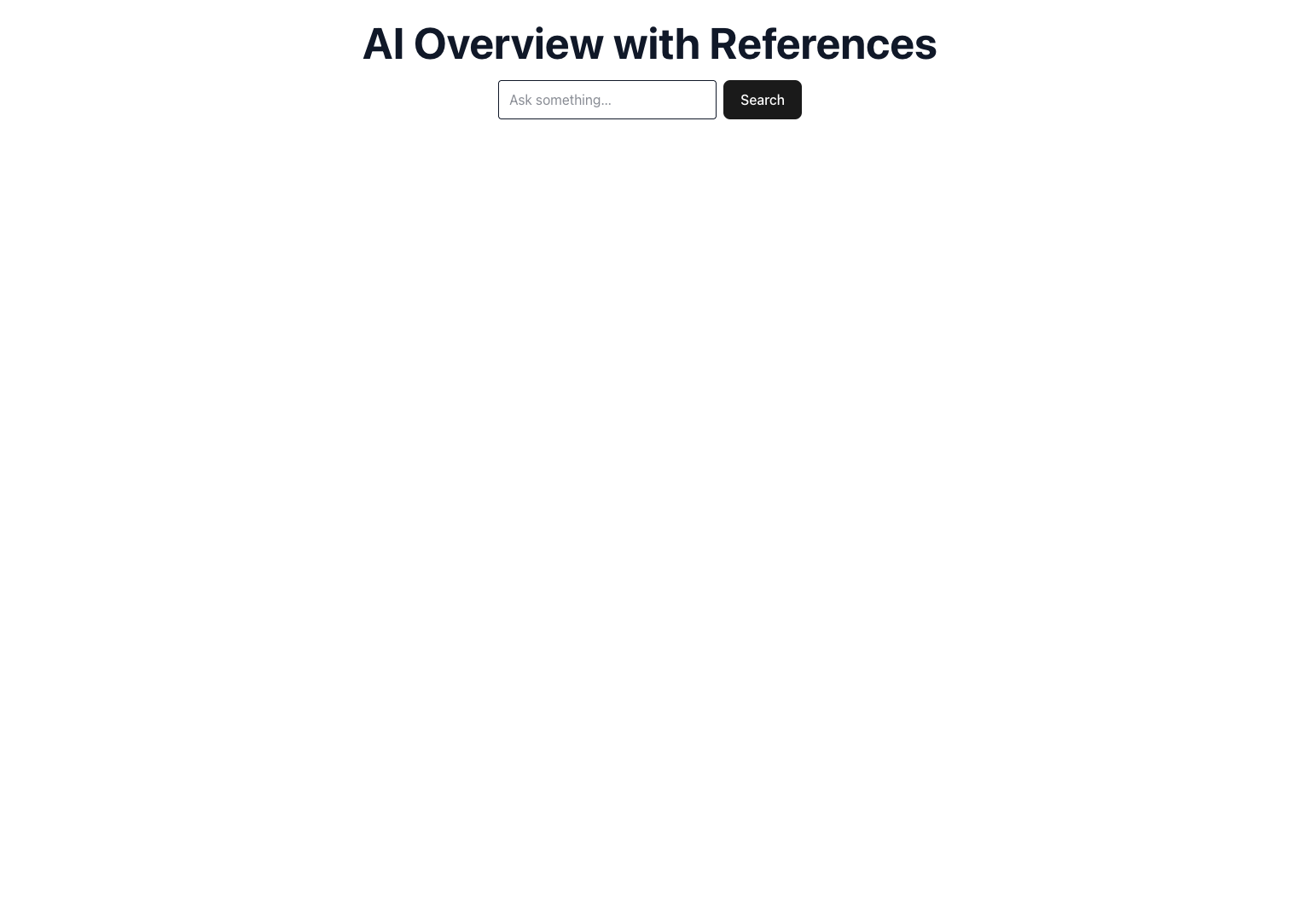When the form is submitted, we clear any previous state, ask our server for results, and stash the returned ai_overview in state. The server already handles the follow-up call when a page_token appears, so the client only needs to check whether an overview exists.