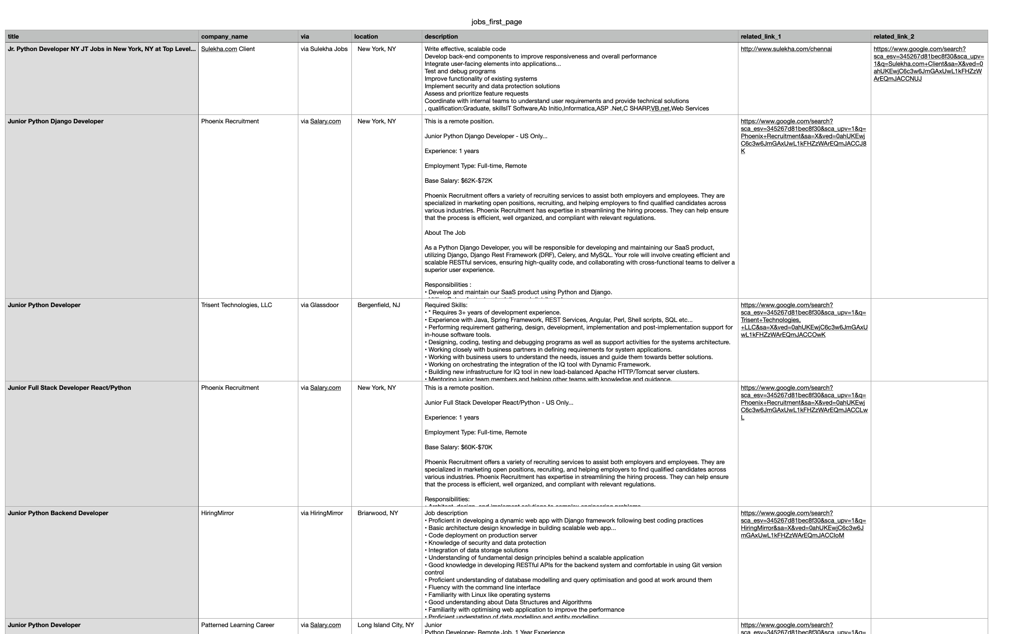 header = ['title', 'company_name', 'via', 'location', 'description', 'related_link_1', 'related_link_2']