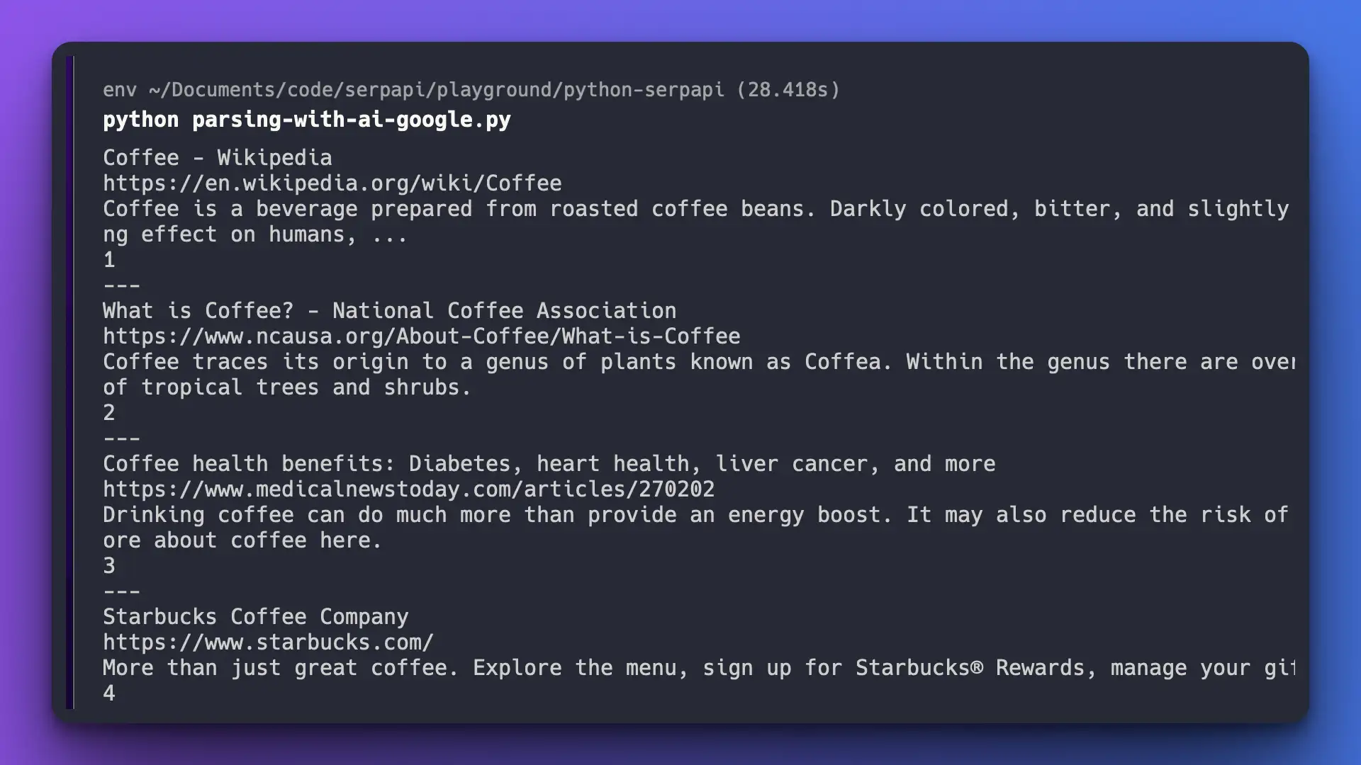 - Return organic results from the Google search results page.