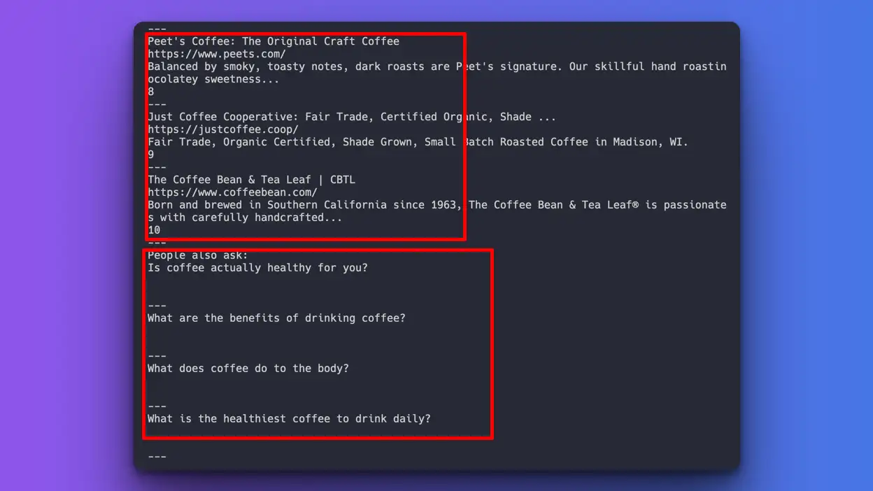 - Adding and separating functions, one for organic results, and one for people-also-ask section.