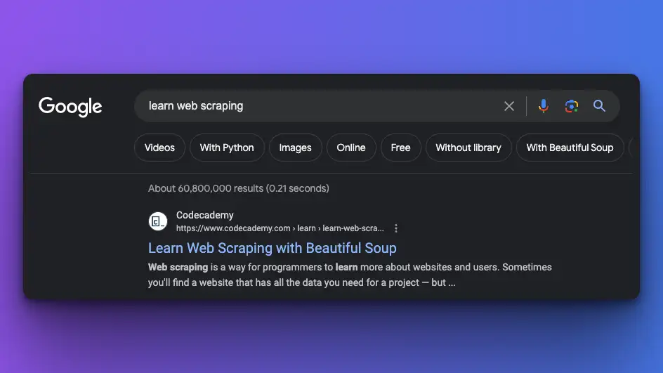 await page.goto('https://www.google.com/search?q=learn+web+scraping&gl=us');