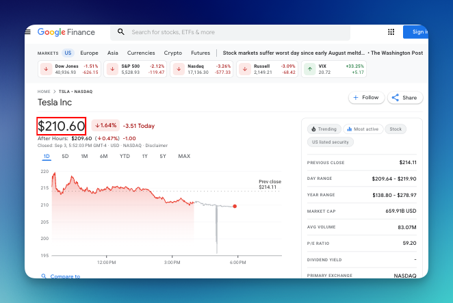 Let's compare the result from Google Finance page with the API response: