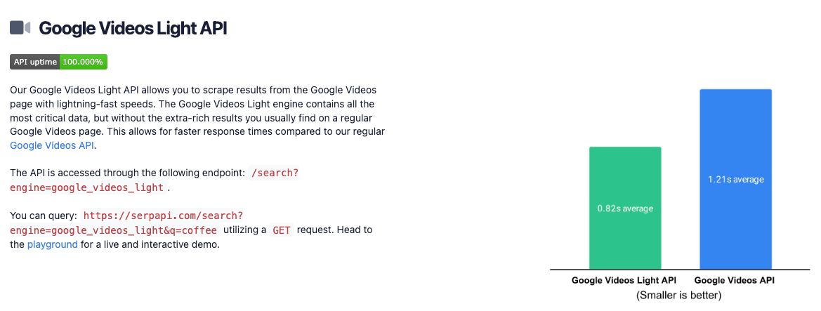 Get a faster response when collecting Google videos using our brand new "Google Video Light API". Discover more about this new API in our documentation.