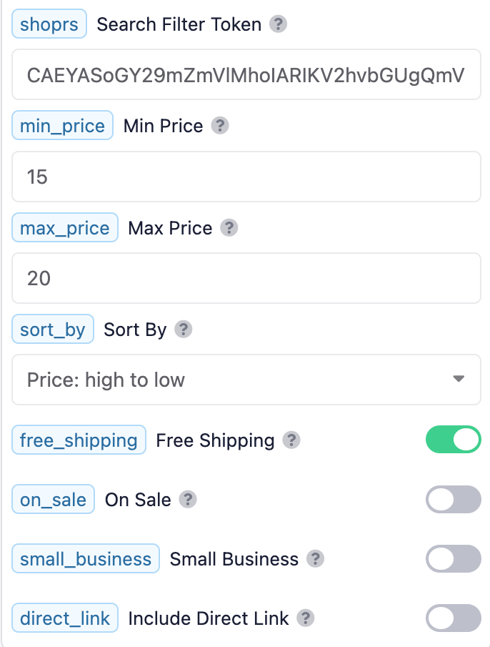 - Google Shopping API: Allow users to search with a price range filter