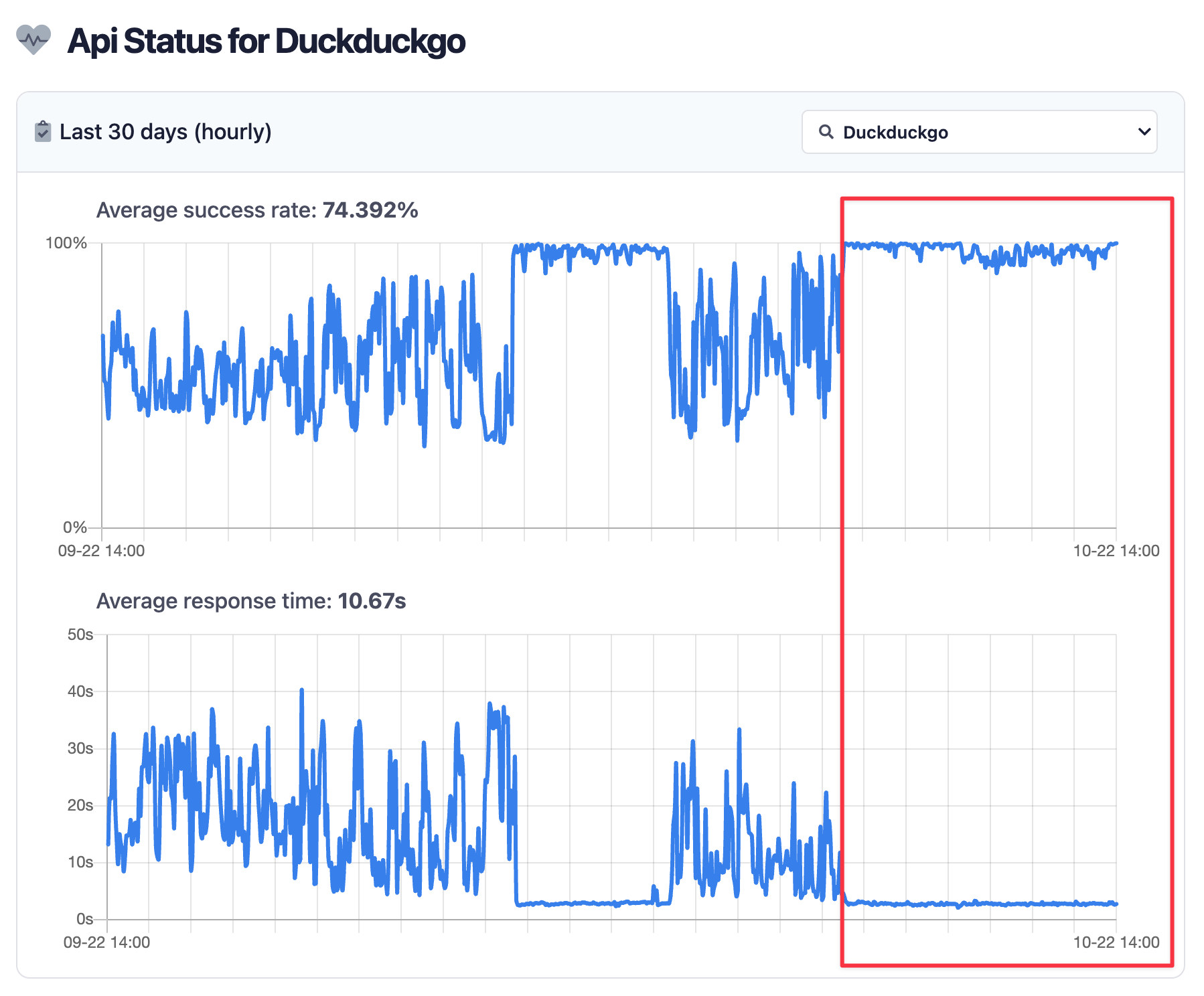 DuckDuckGo recently ramped up its anti-scraping protections, which initially caused performance degradation. Our engineers responded quickly, overcoming the challenge and delivering major improvements in response time and success rate. Details