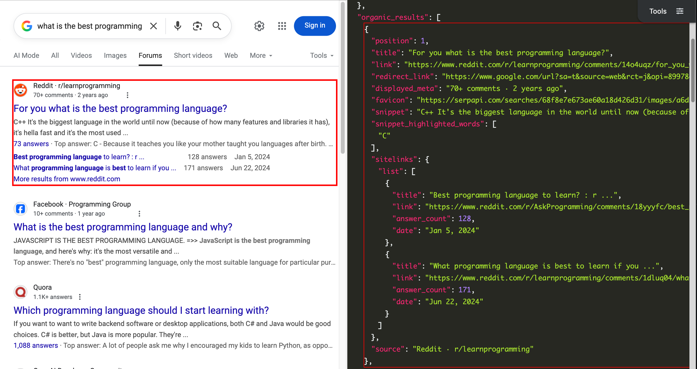 We’ve released a new Google Forums API, enabling structured access to forum-style results such as Reddit, Quora, and other community discussions directly from Google’s search.