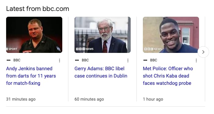 Certain Google searches return a "Latest from" block. SerpApi is able to scrape, extract, and make sense of this information.